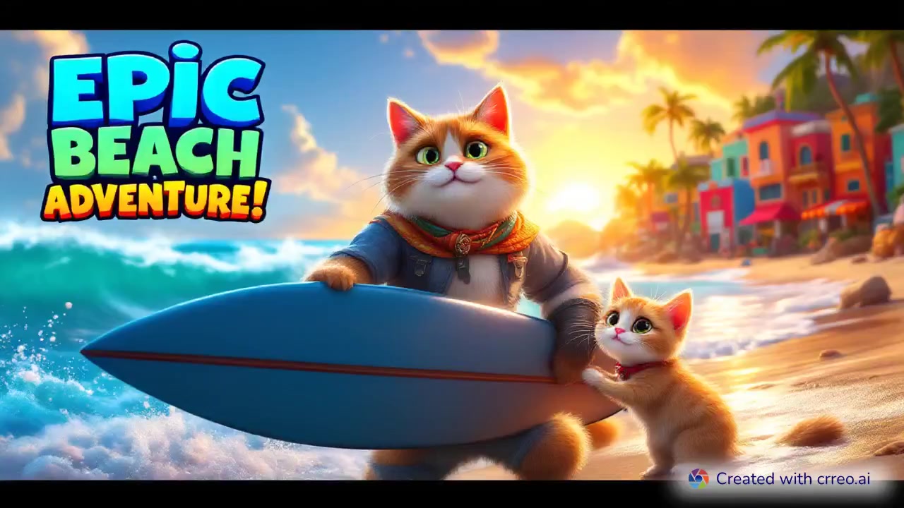"Epic Cat Adventure: Max & Whiskers Ride Waves and Face Sharks!"