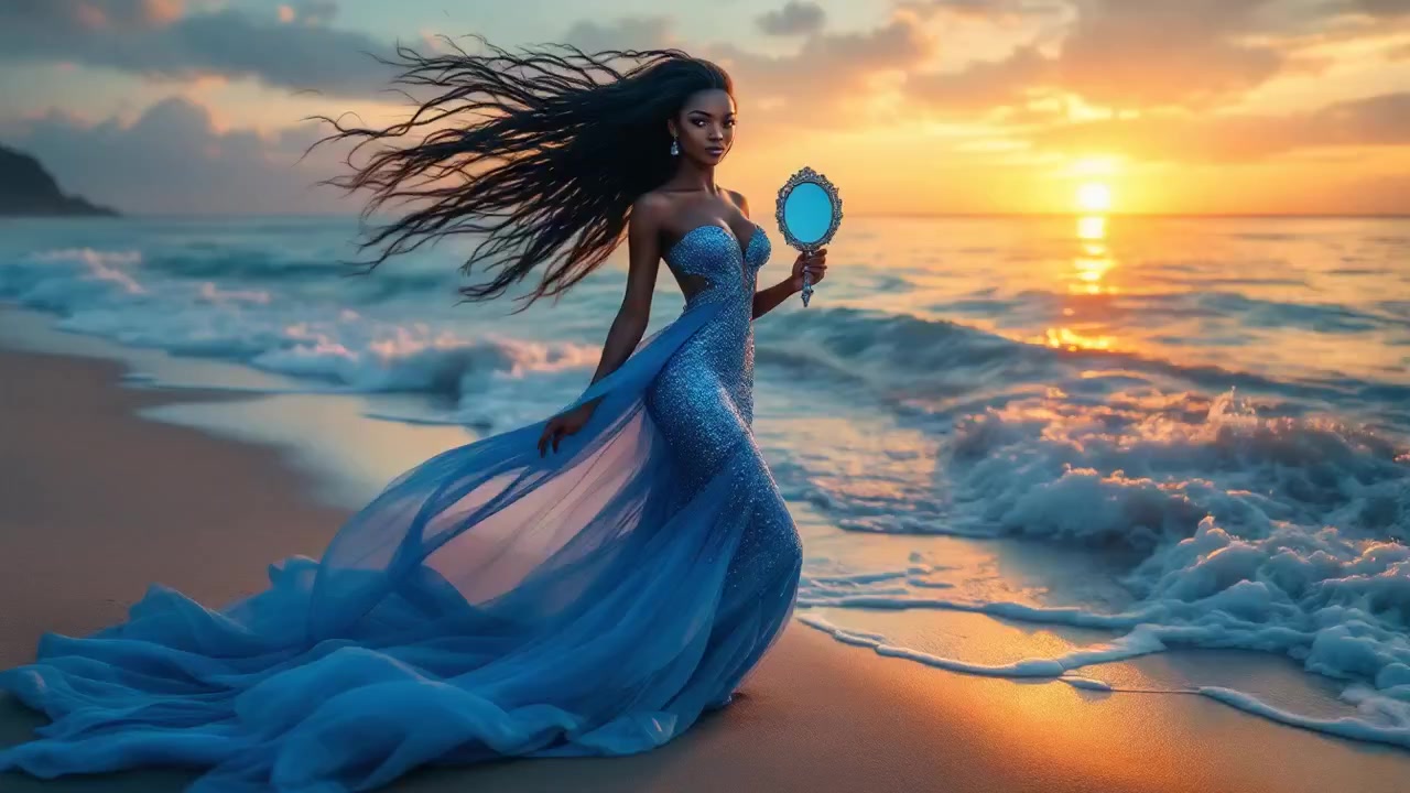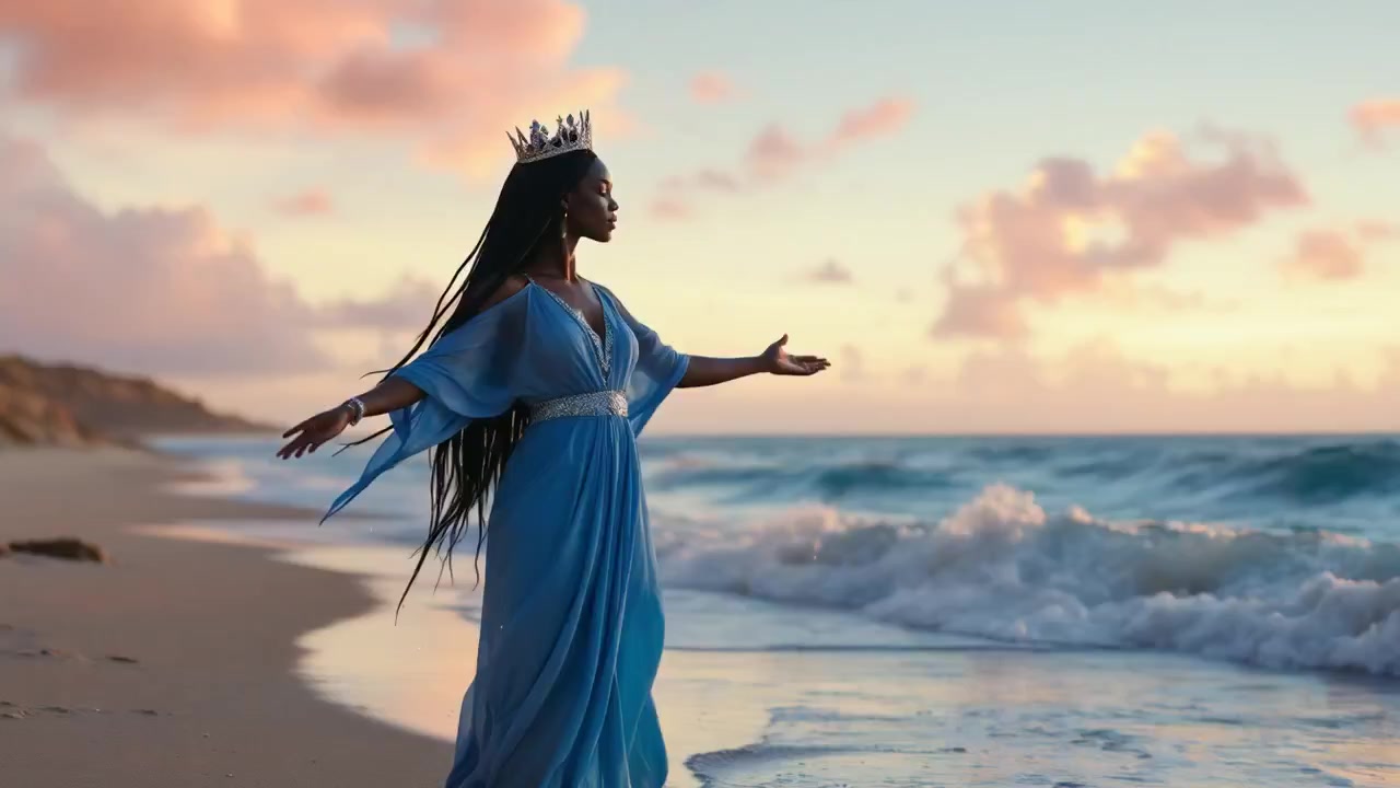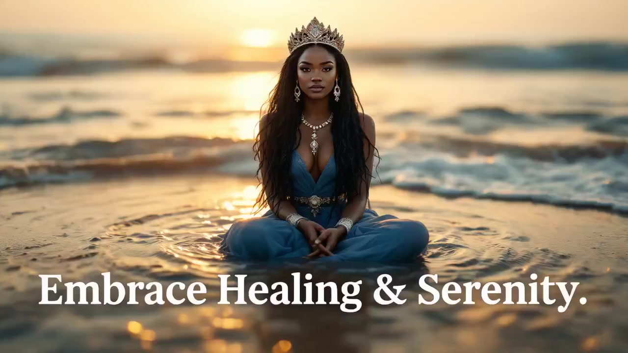 "Embrace Serenity: Yemoja's Healing Energy at Dawn's Tranquil Coastline""Awakening the Waters Within: Embrace the Ocean's Calm and Find Your Inner Peace"