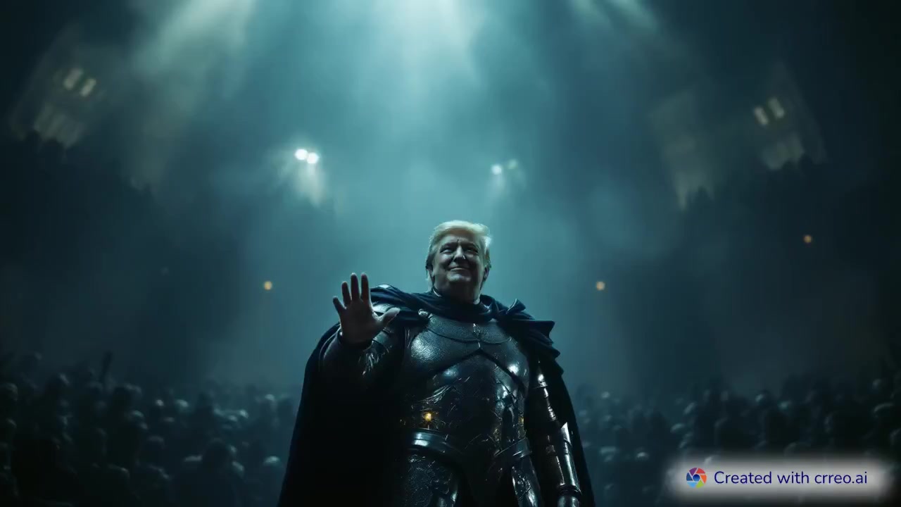 "Uncanny Trump in Armor: A Surreal Arena Showdown"
